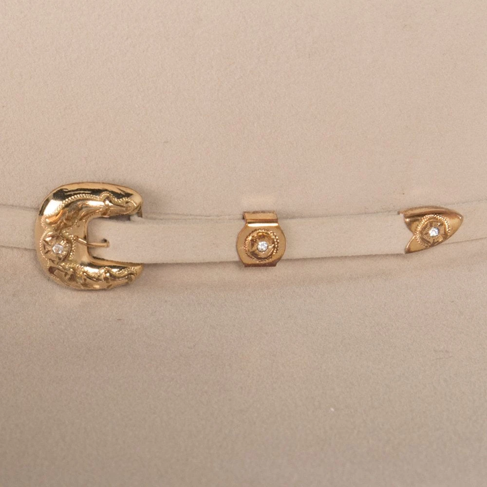 This American Hat Co 1000X Silverbelly Felt Cowboy Hat is the perfect hat for this fall and winter rodeo season. This 1000X quality Silverbelly felt features 4-1/4″ brim, matching hat band with a gold buckle set, and leather sweatband.