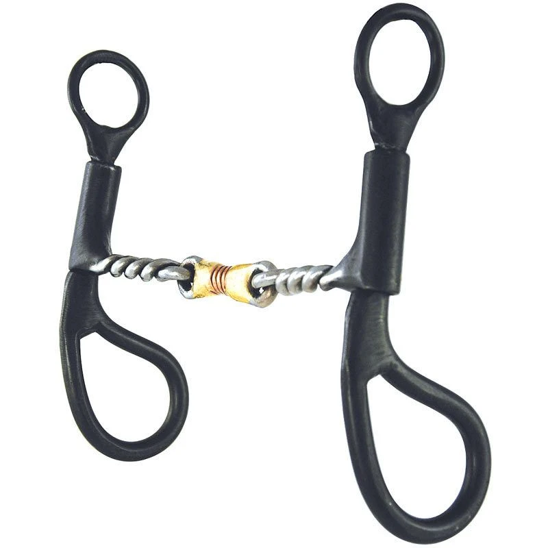 Tear drop shaped short shank bit is great for young horses as a transition from the ringed snaffle to a shank bit. The shanks swivel independently from the mouthpiece aiding in lateral flexion. The reins move loosely in the tear drop creating a soft feel.