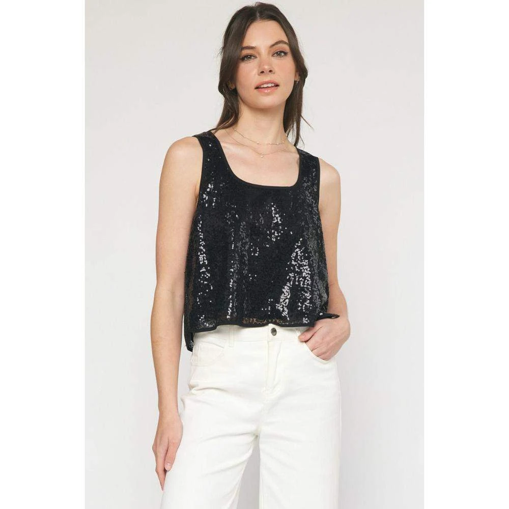 Womens Black Sequin Tank by Entro