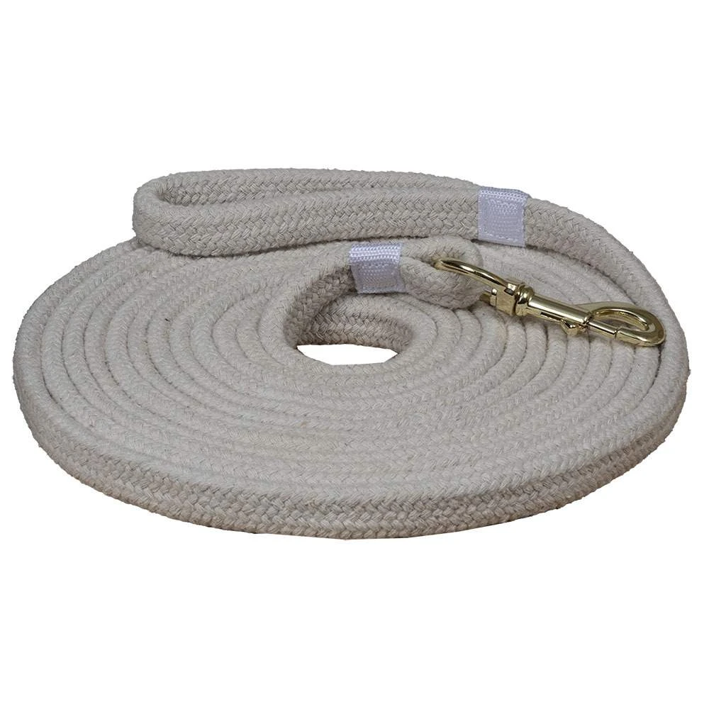 The Mustang Cotton Lunge Line is made from soft, yet durable braided cotton and features a brass plated snap. Total lunge line length is approximately 25′ x 1″.