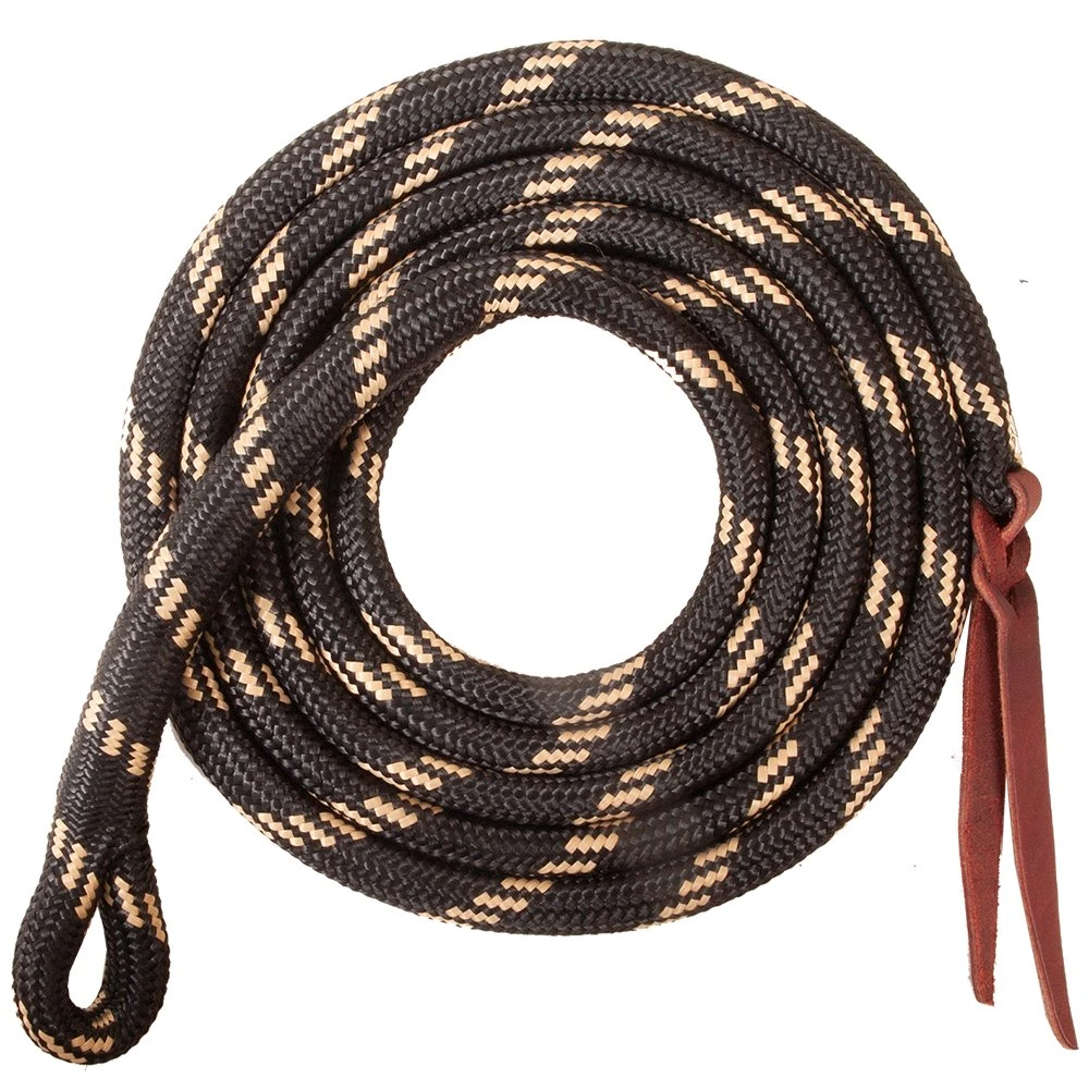 5/8″ x 10 1/2′ Nylon double braided with core lead allows handler to effectively communicate with horse using light cues. Nylon rope is UVA protected to protect color and reduce wear. Lead features a loop end and leather popper.