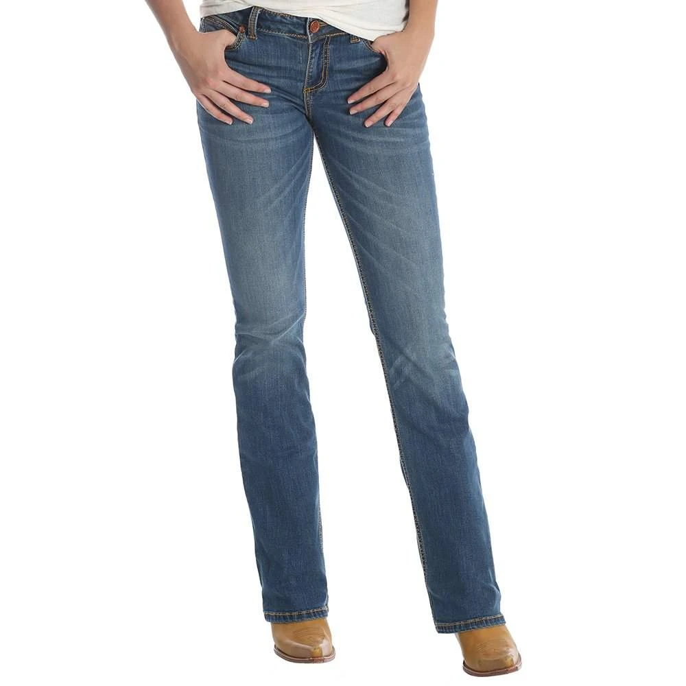 These women’s bootcut jeans come with a figure-flattering, mid-rise fit that is very versatile. They are offered in multiple lengths, have a zipper fly and have the authentic “W” stitching on the back pockets. They are a Wrangler jean you are sure to love!
